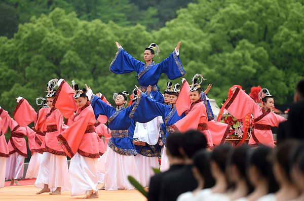 4月20日,演职人员在典礼上献祭舞。当日是谷雨节气,2017年公祭大禹陵典礼在浙江绍兴举行。 1995年,浙江省和绍兴市政府联合举行公祭典礼,恢复祭禹传统。2006年,大禹祭典被列入国家级非遗保护名录,2007年公祭大禹陵成为国家级祭祀活动。