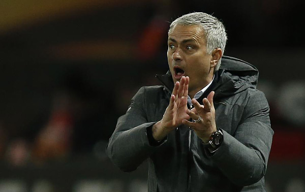 20日堪称欧罗巴联赛的“加时赛日”,四场八强战中有三场双方通过加时赛才分出胜负。英超曼联队凭借加时赛下半场的进球,总比分3:2险胜比利时球队安德莱赫特,法甲里昂队更是通过点球大战淘汰土耳其的贝西克塔斯,晋级四强。图为曼联主教练穆里尼奥在场边指挥。